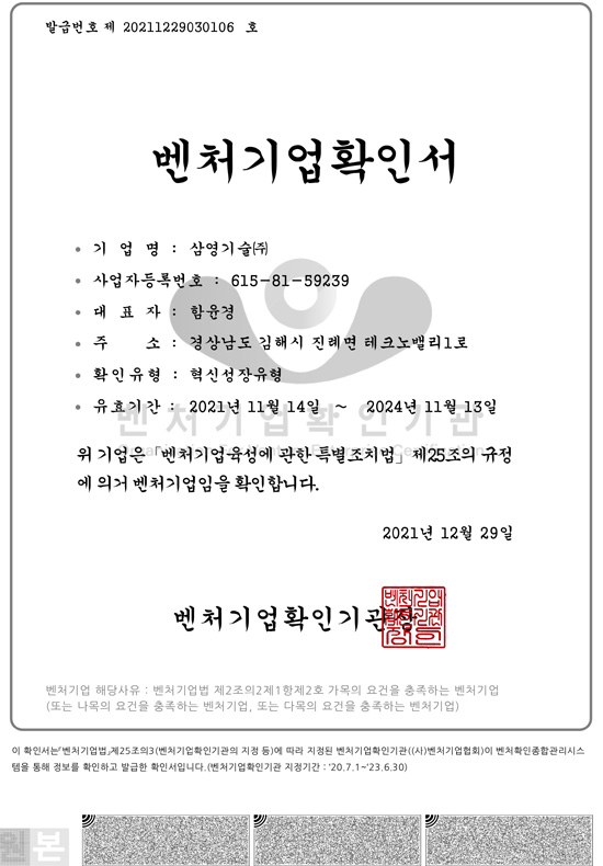 - 본사/공장 : 경상남도 김해시 진례면 테크노밸리1로 93번길 33 (고모리 1581-1)